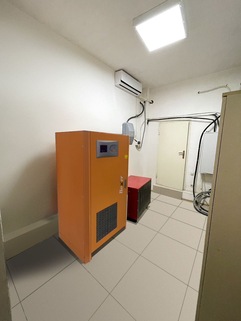 мощность 90 кВт (100 кВА), тип: с двойным преобразованием, напряжение (вх./вых.) 380В / 380В, габариты 570х760х1500 мм