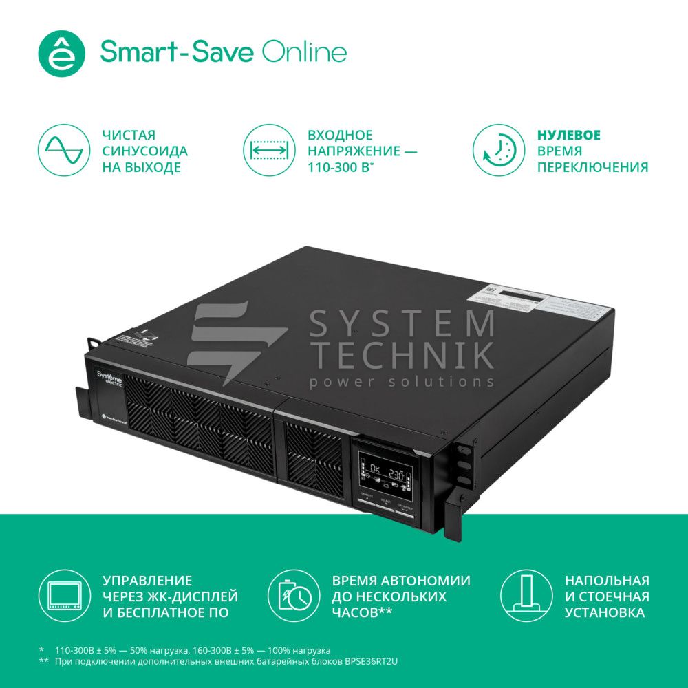 | Тип ИБП | двойного преобразования (on-line) |